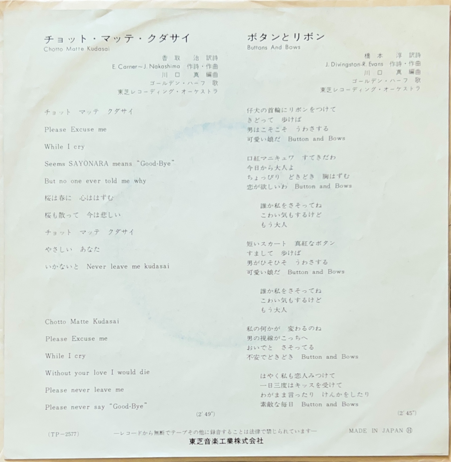 チョット・マッテ・クダサイ / ボタンとリボン [ vinyl 7inch ]