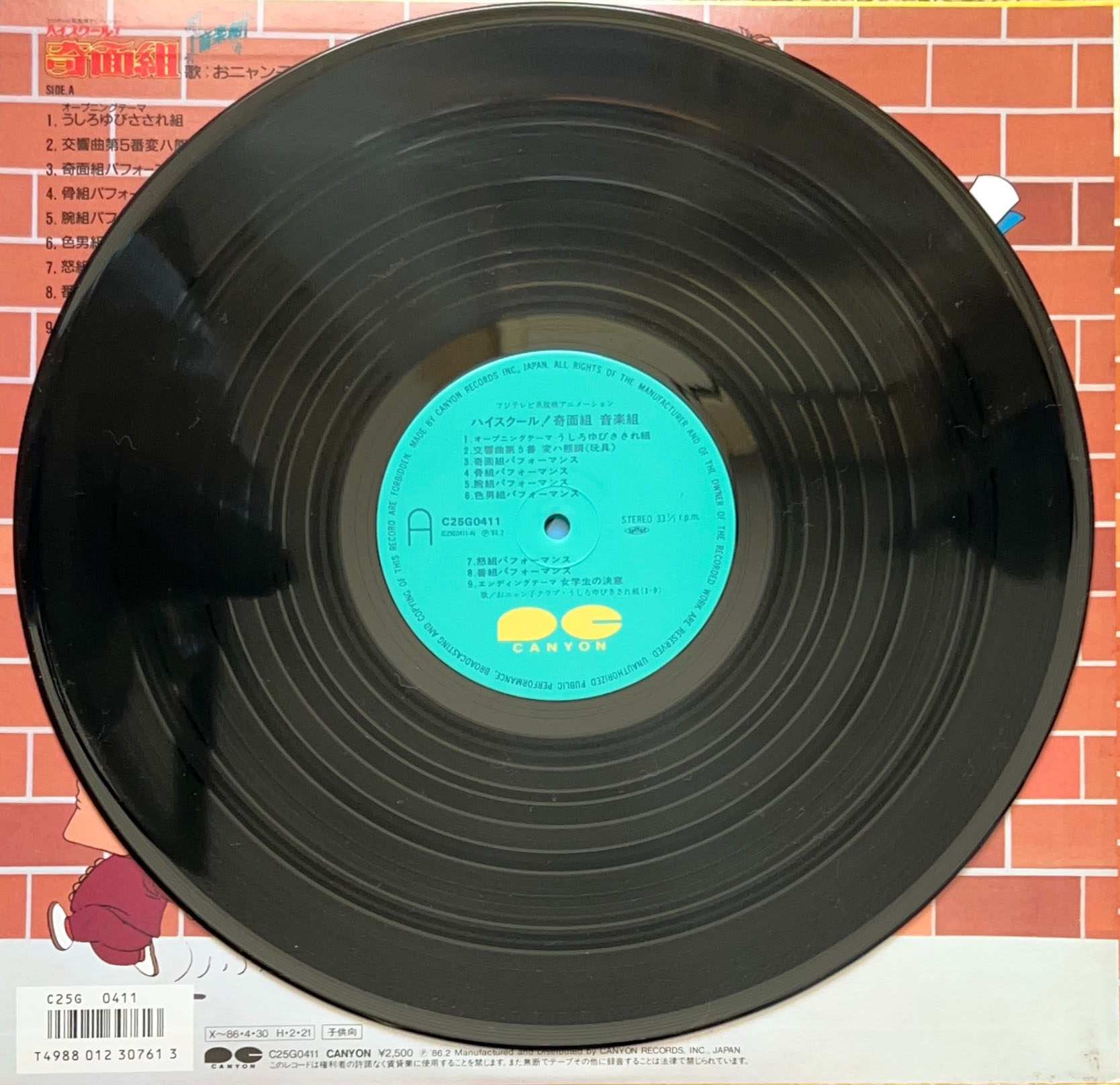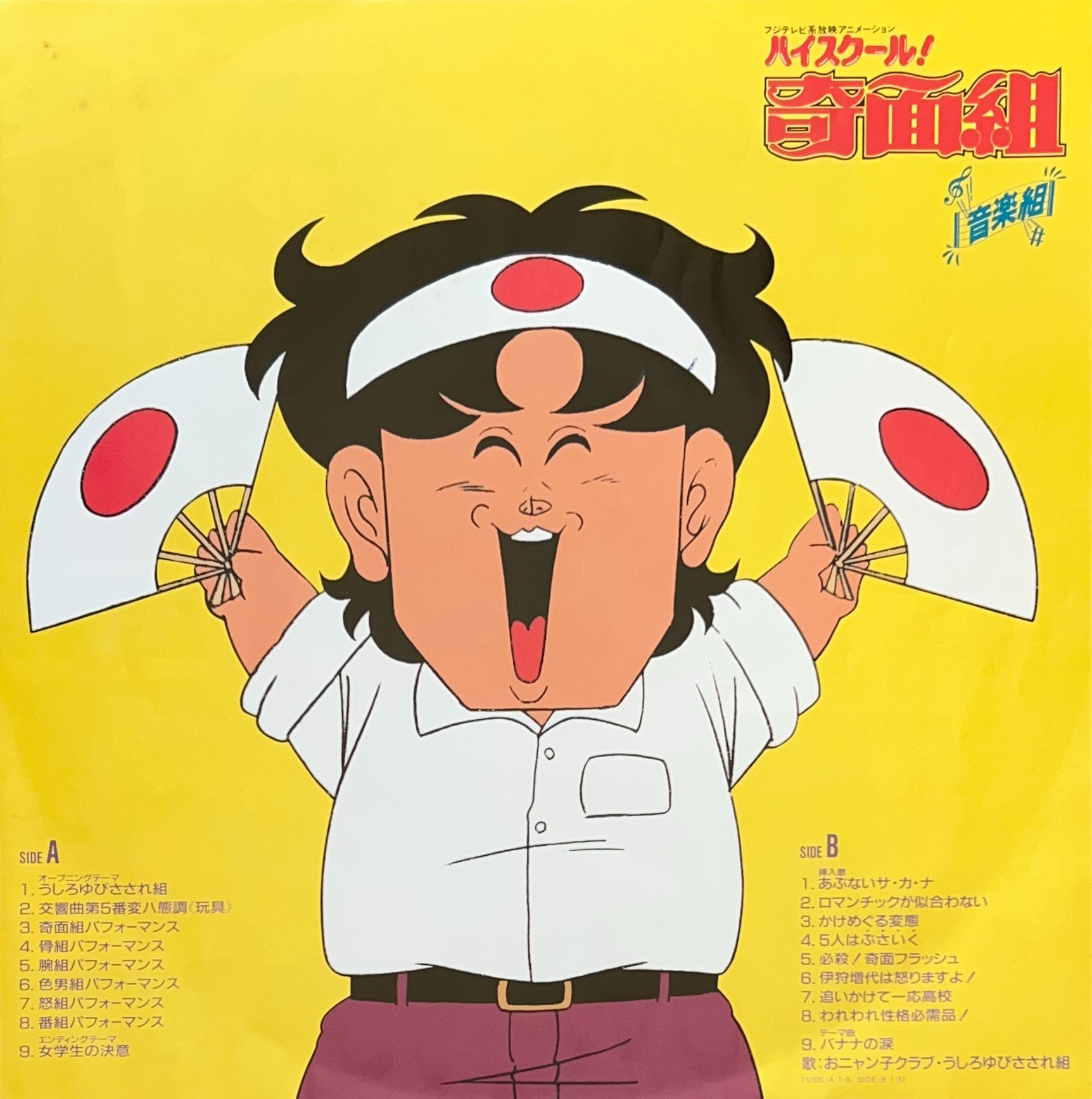 1986年リリース ハイスクール!奇面組のサントラ盤 うしろゆびさされ組の曲以外は全て作曲:菊池俊輔 C25G0411