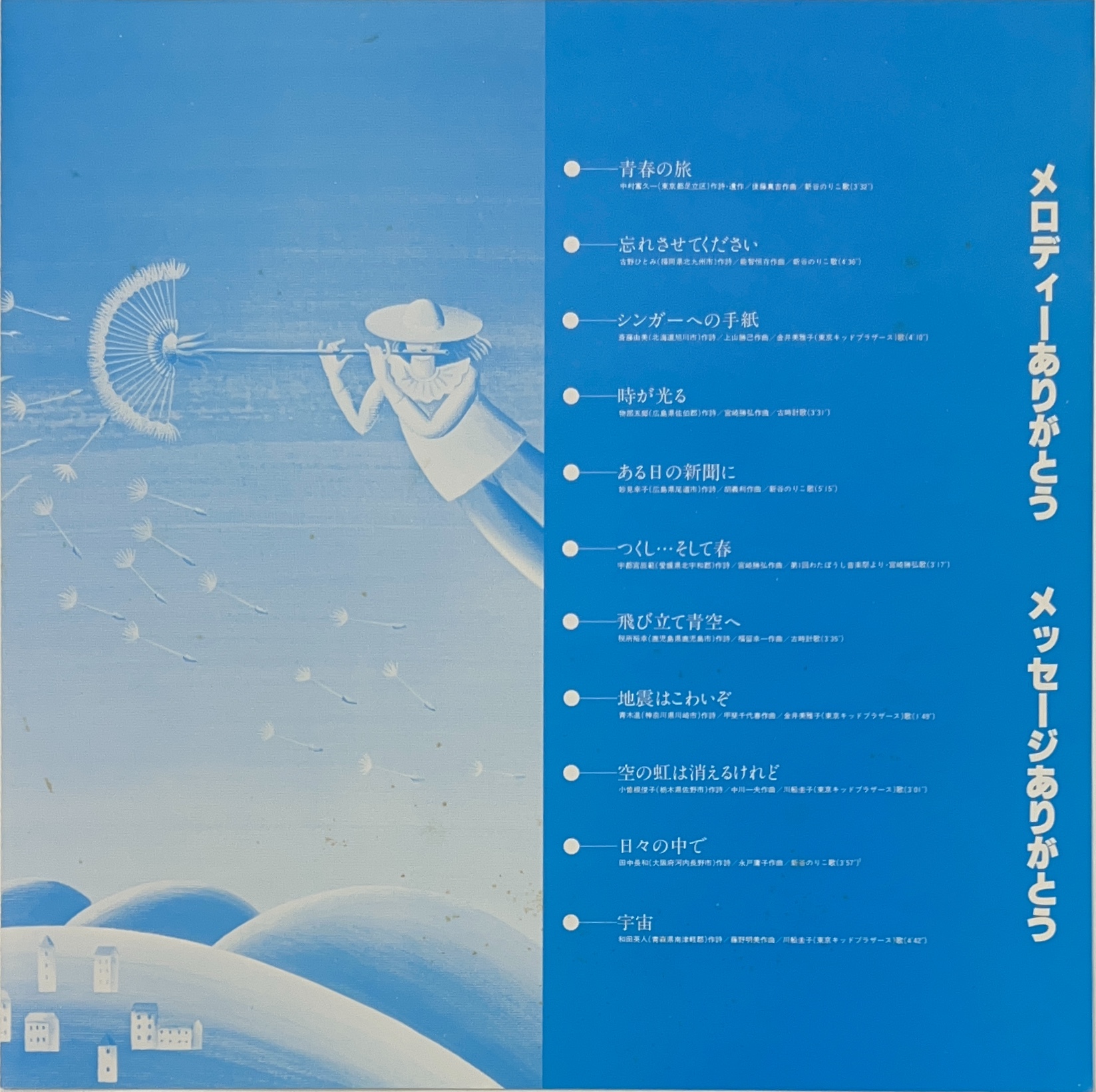 新谷のりこ、古時計、東京キッドブラザースの川船圭子、金井美雅子等、吉野藤丸、松武秀樹などが参加。 全国のハンディ・キャップを持つ子供たちの詩を、フォークのメロディーに乗せて歌う「全国わたぼうし音楽祭」から産まれた福祉レコード・コンピレーション。
