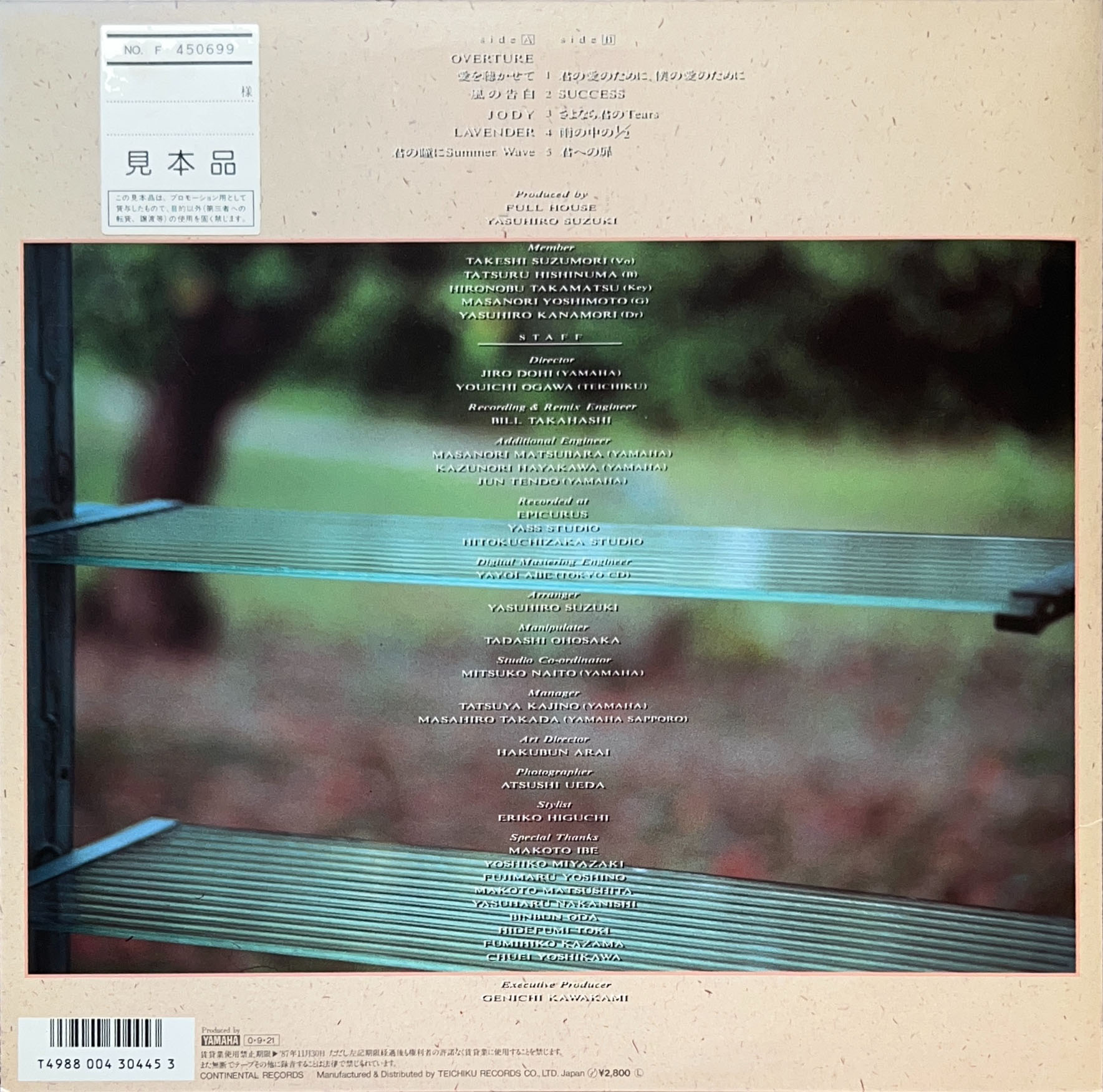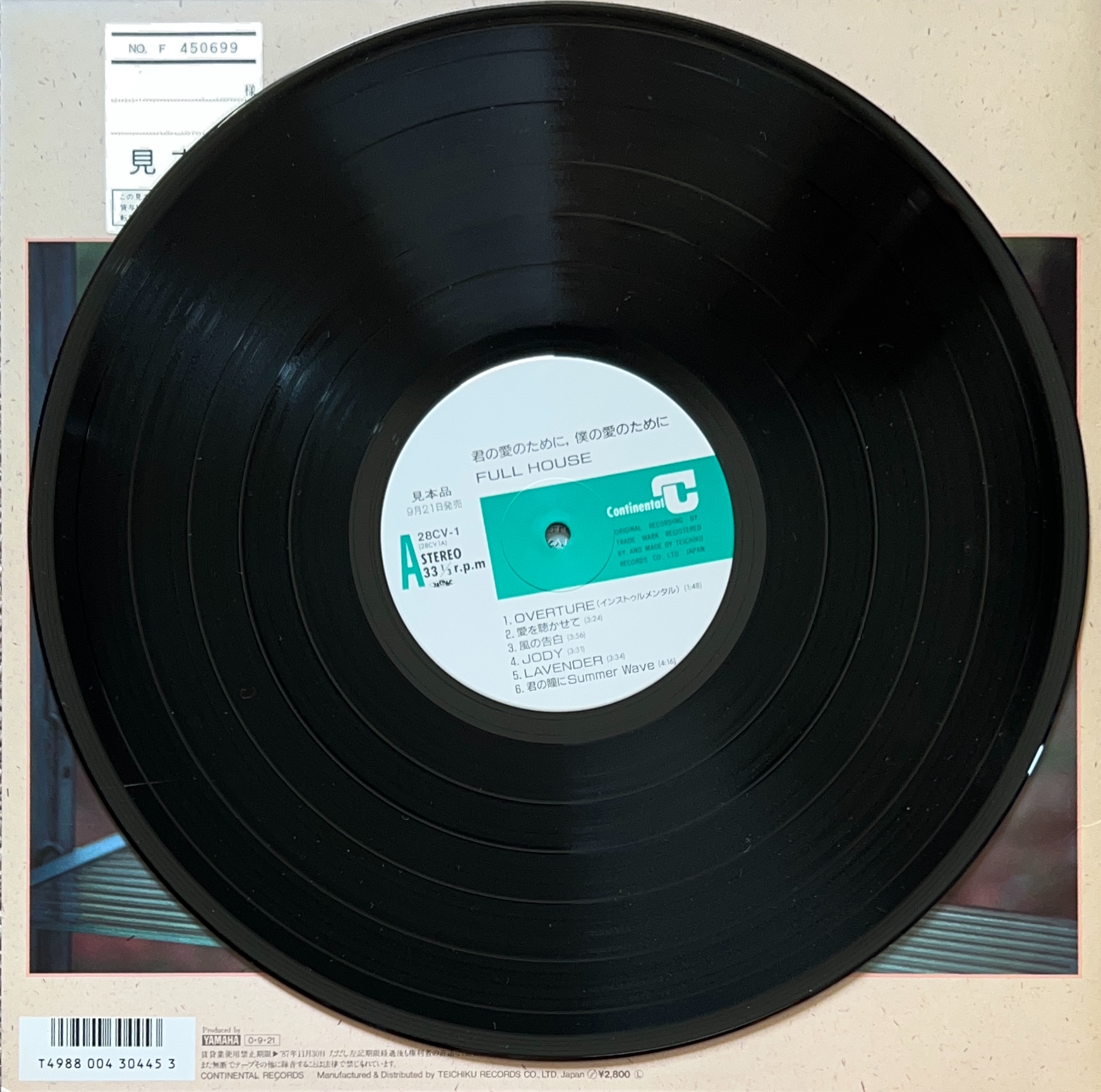 1987年リリース 元オフコースの鈴木康博さんとの共同プロデュース、シティポップレア盤 28CV-1 見本盤