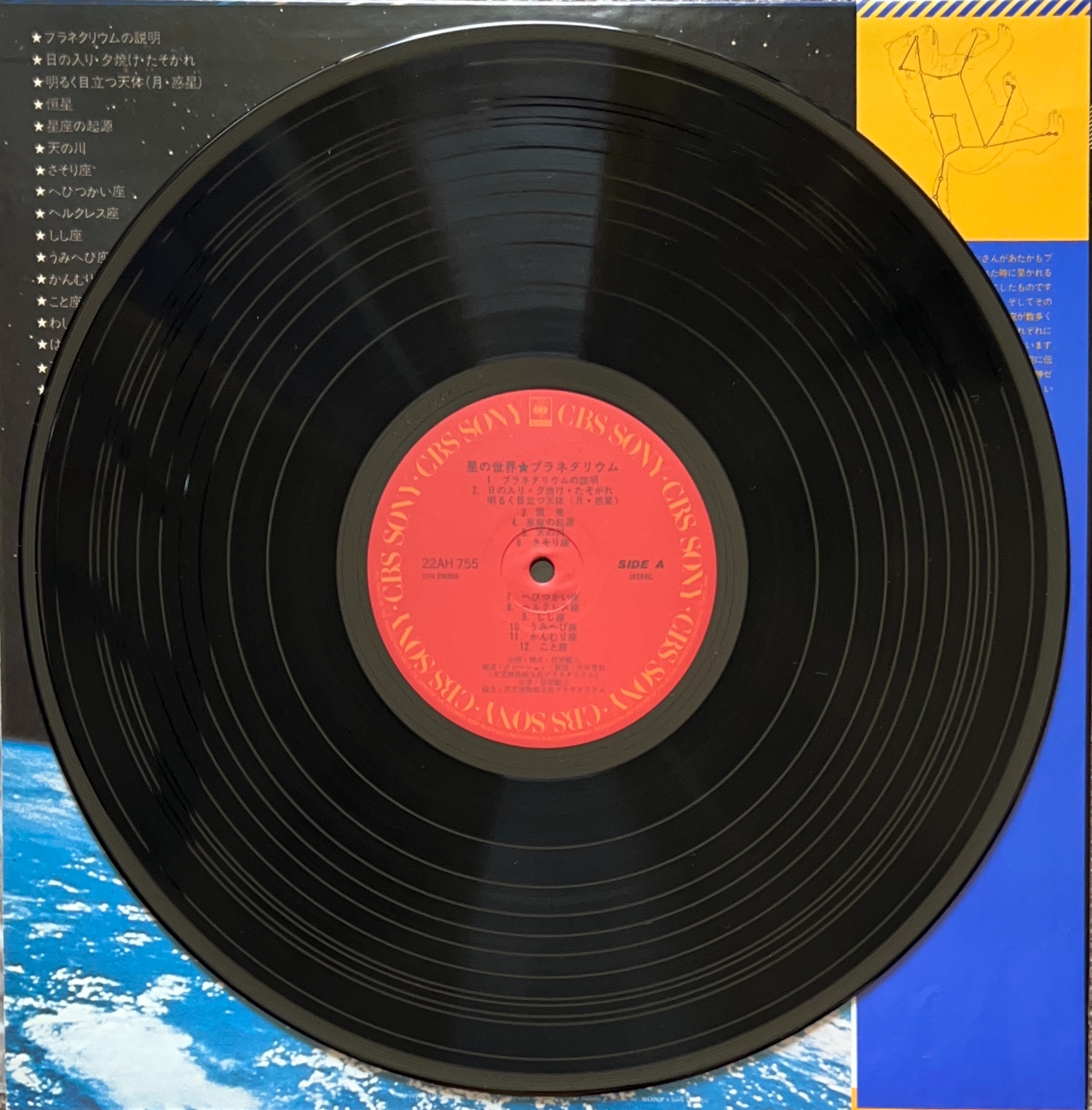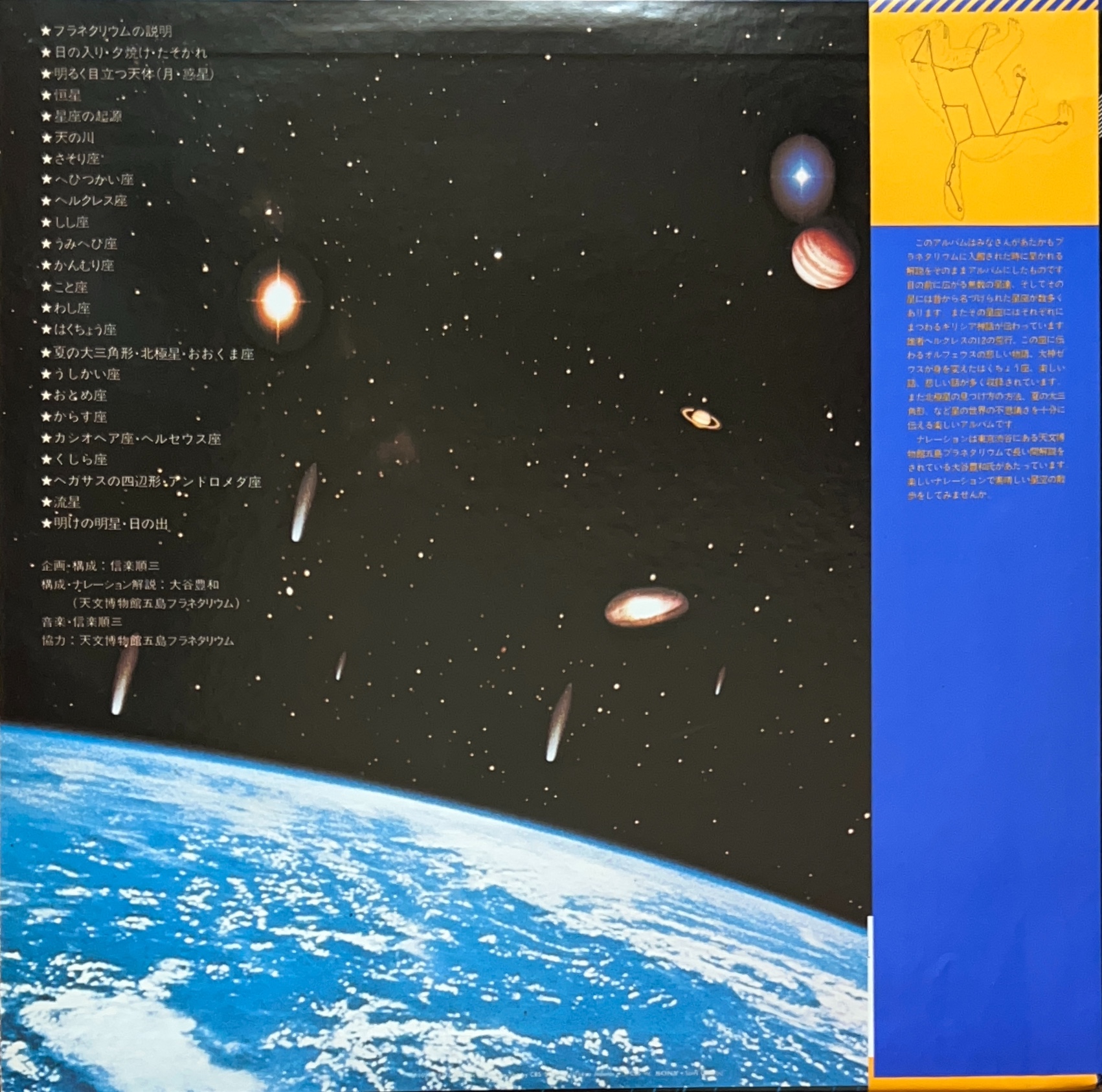 1979年リリース 天文博物館五島プラネタリウム ギリシア神話を織り交ぜた星座の解説が収録 ナレーション大谷豊和、音楽は信楽順三 CBS/Sony 22AH 755