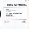 フランスの女性シンガーMARIA D’APPARECIDA(マリア・アパレシア)の7インチ。打ち鳴らされるドラムにクイーカと華麗な鍵盤が乗るフレンチサンバ「ILY AURA TOUJOURS DES MUSICIENS」がキラー。