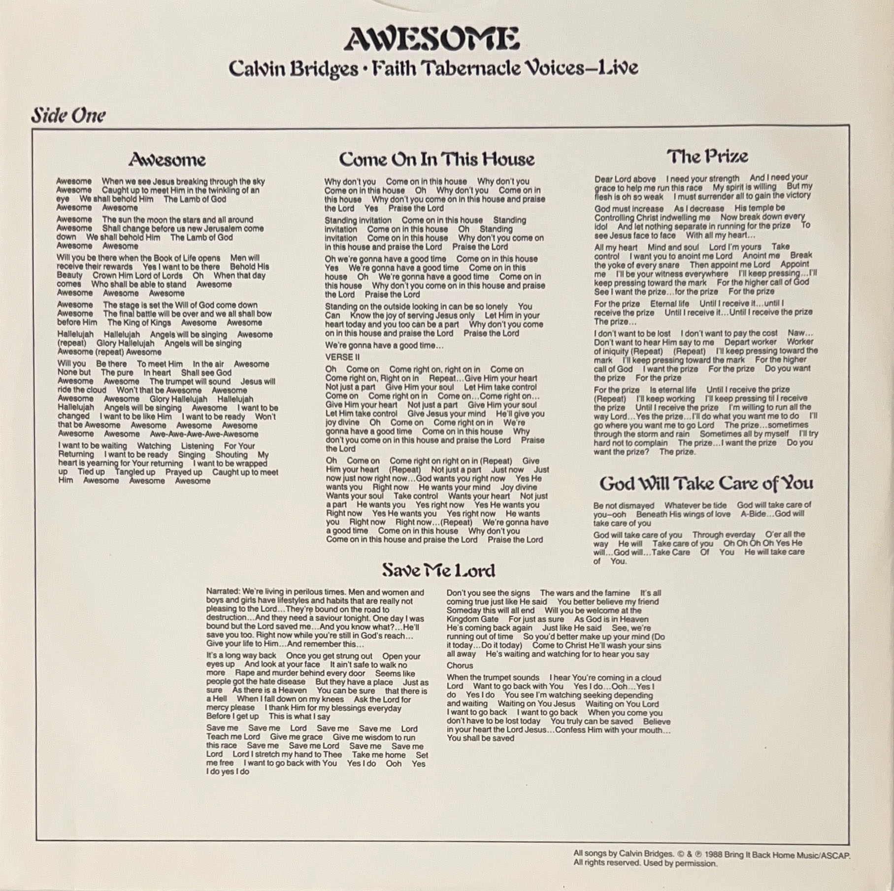 CALVIN BRIDGES(カルバン・ブリッジズ)の希少ゴスペルLiveアルバム。
