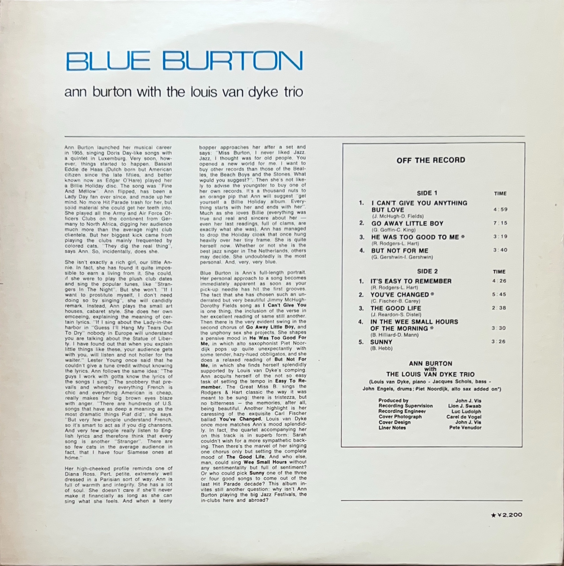 オランダの歌姫アン・バートンの公式デビュー・アルバム