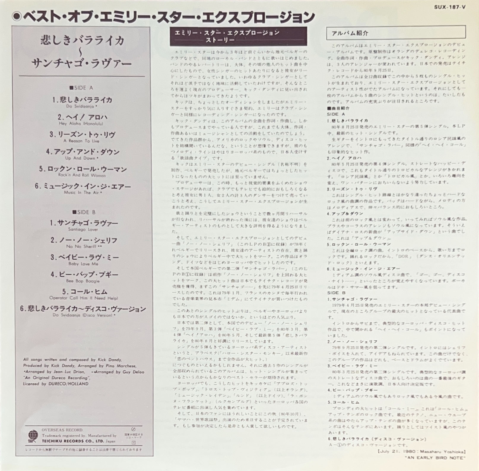 ベルギーのディスコシンガーEMLY STARR率いるEmly Starr Explosionのベストアルバム