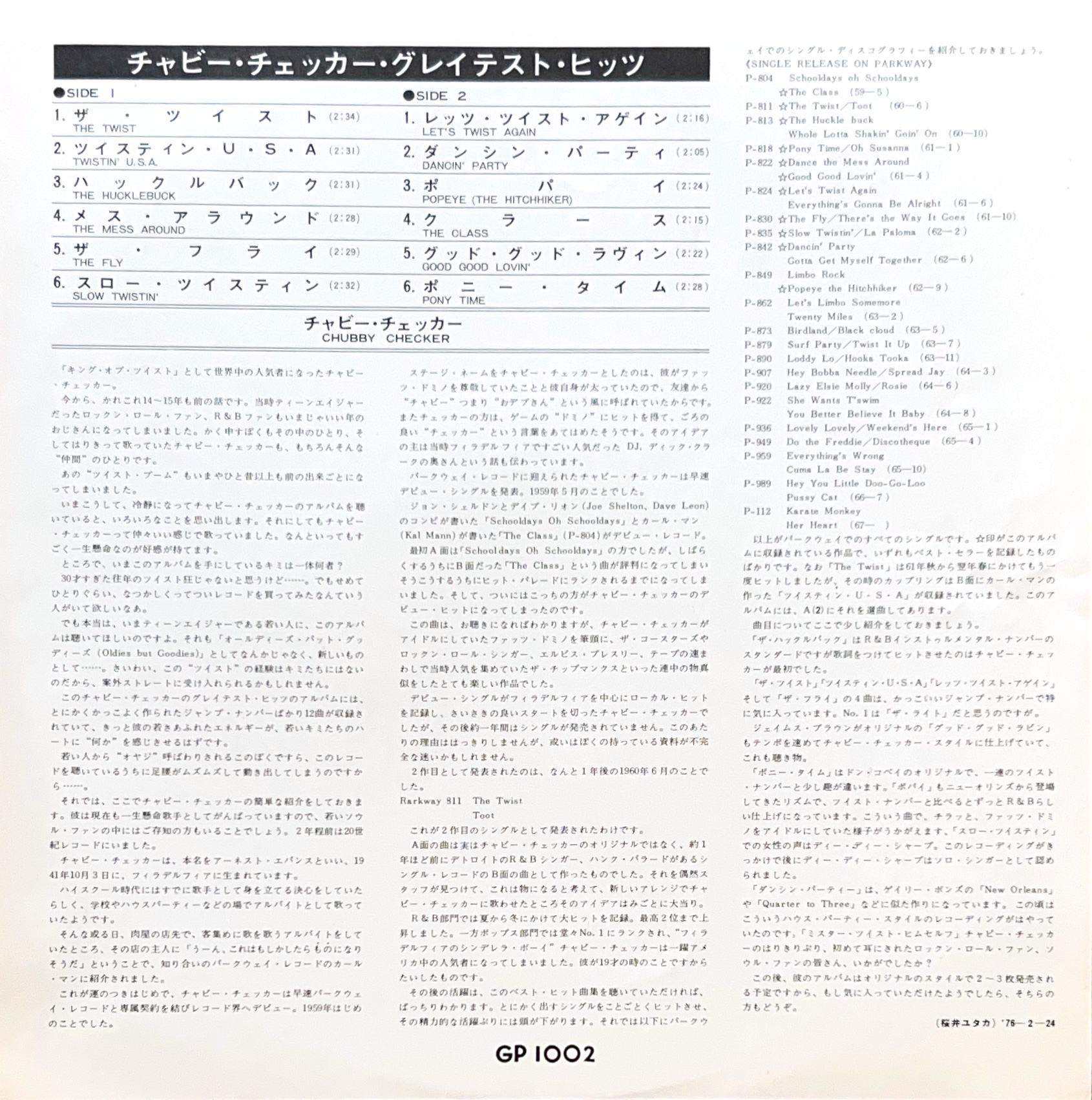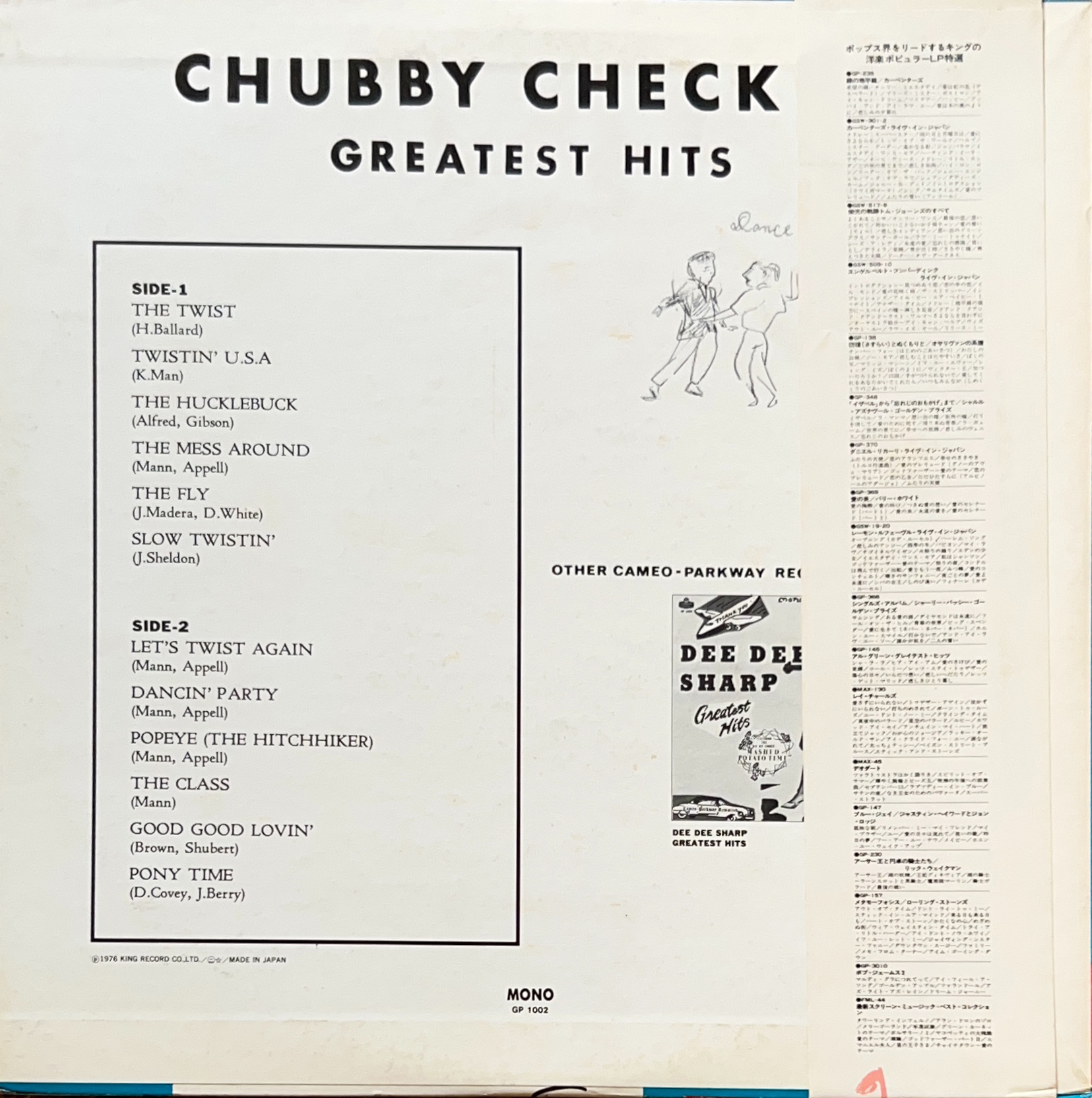 1976年リリースのベスト盤 「THE TWIST」、「LET’S TWIST AGAIN」など収録 国内盤のジャケデザインは湯村輝彦 GP 1002