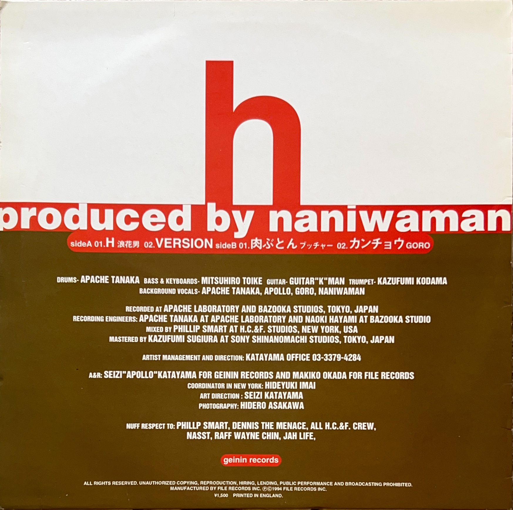 1994年リリース 大阪府出身のレゲエシンガー浪花男の12inch こだま和文がオケで参加 FR-021