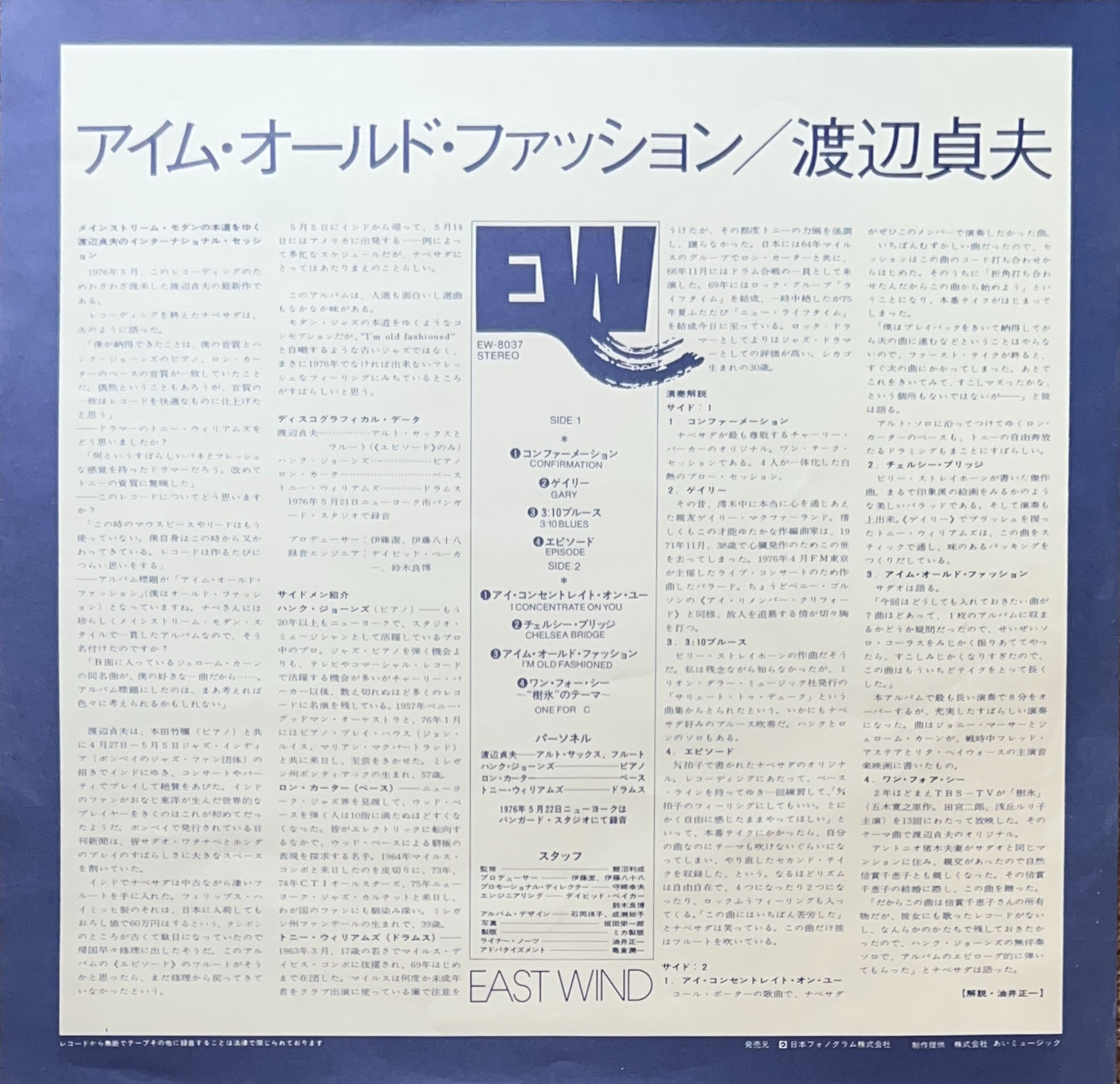 最強のリズム・セクション=ザ・グレイト・ジャズ・トリオをバックに従え、ワン・ホーンで自在なプレイを繰り広げる渡辺貞夫の傑作。