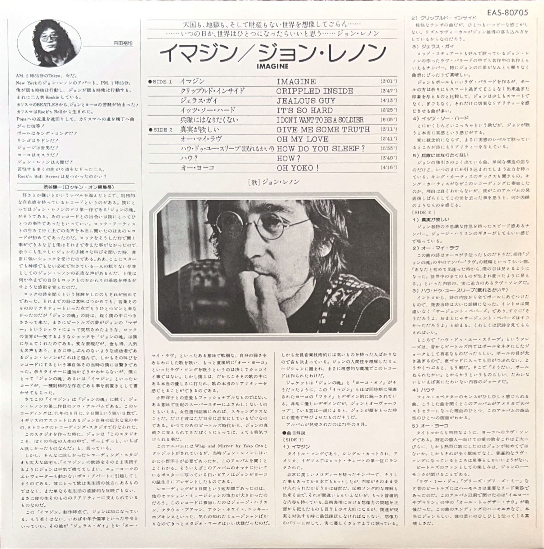 71にリリースされ全米・全英共に1位を獲得したJohn Lennonソロ作として最大のヒット作となった20世紀ロックを代表する名盤。永遠に歌い継がれるであろう名曲「Imagine」、彼の死後追悼シングルとして全世界でシングルカットされ、Roxy Musicはじめ数多くのカバーを生んだ名曲「Jealous Guy」、Sax奏者King Curtisの遺作となった「It’s So Hard」等、全10曲を収録。