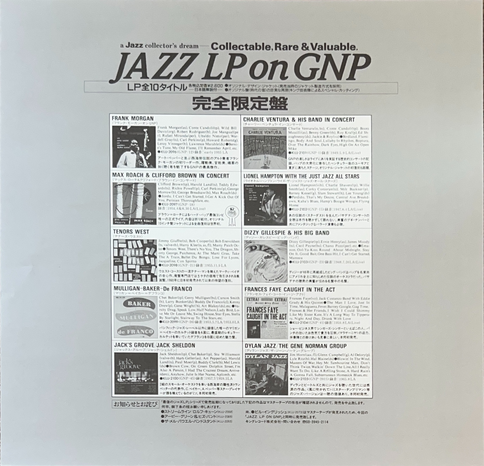 1949年カルフォルニアにて実況録音された一枚。ジャッキー・ケインの「OVER THE RAIBOW」、「FALMINGO」「BODY AND SOUL」など収録。