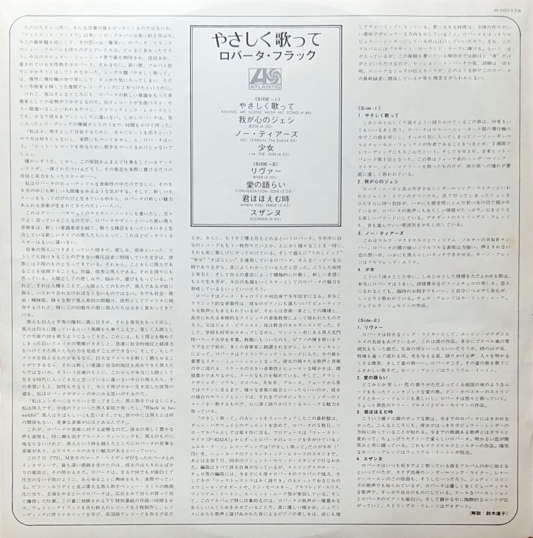 代表曲「Killing Me Softly(やさしく歌って)」、ジャニス・イアン作の「我が心のジェシ」など収録