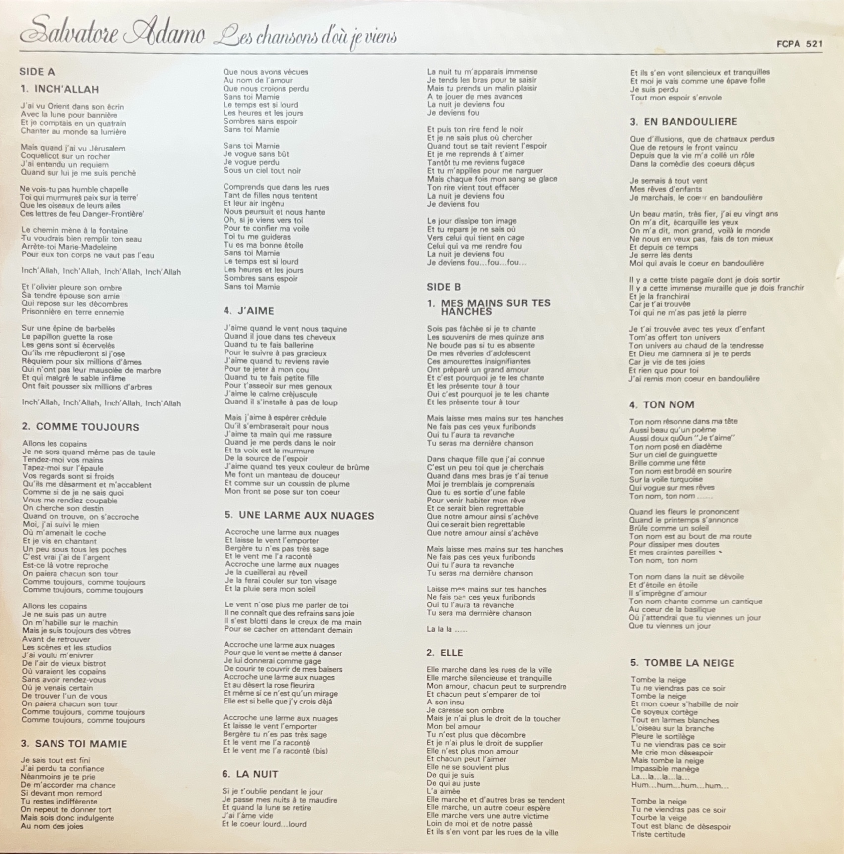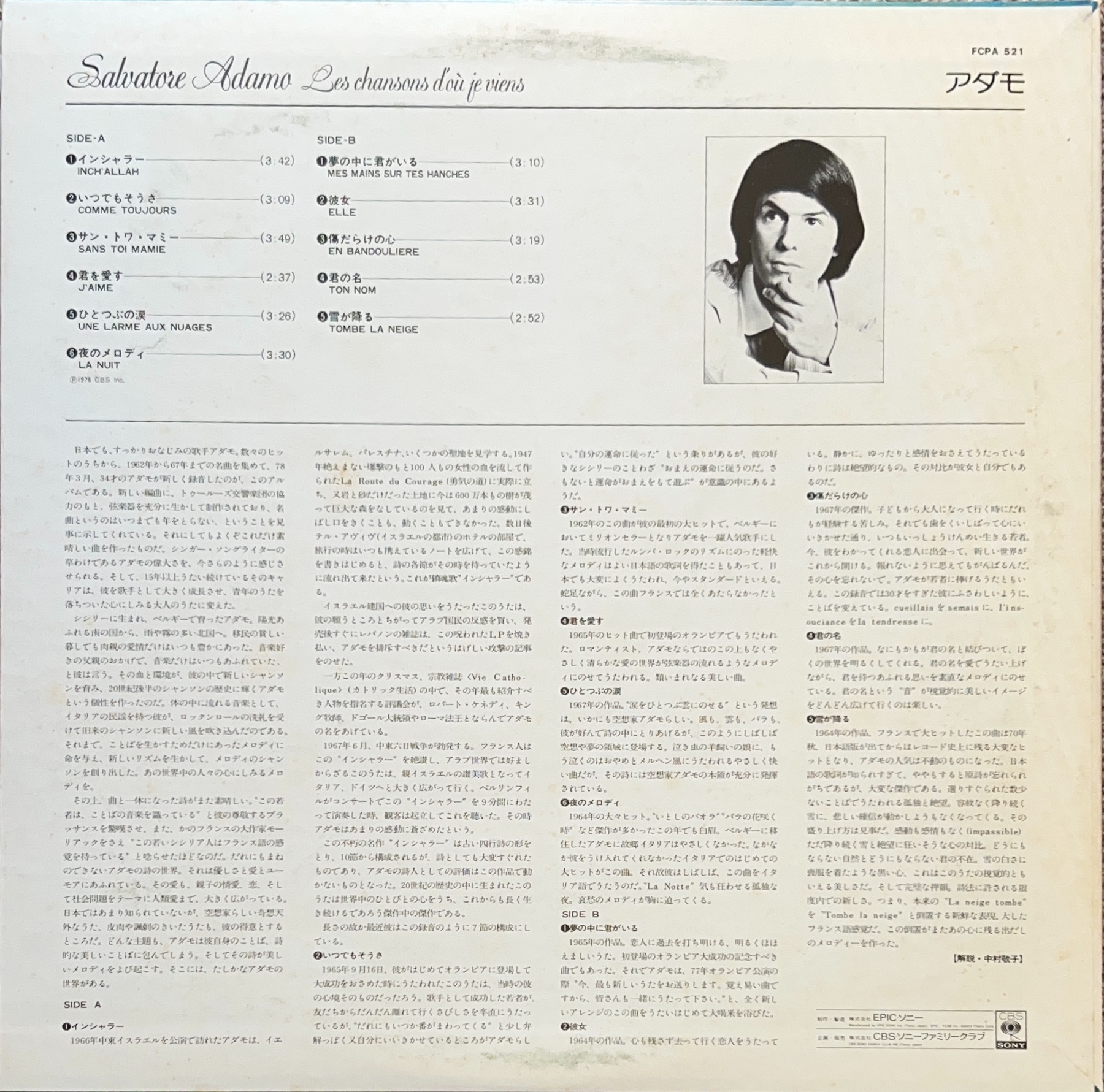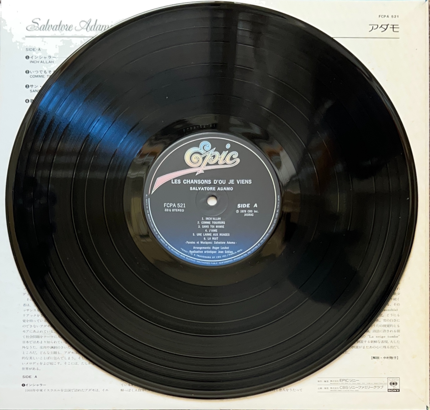 1979年リリース 日本企画のベスト盤 「サン・トワ・マミー」「雪が降る」「夜のメロディ」「インシャラー」収録 FCPA 521