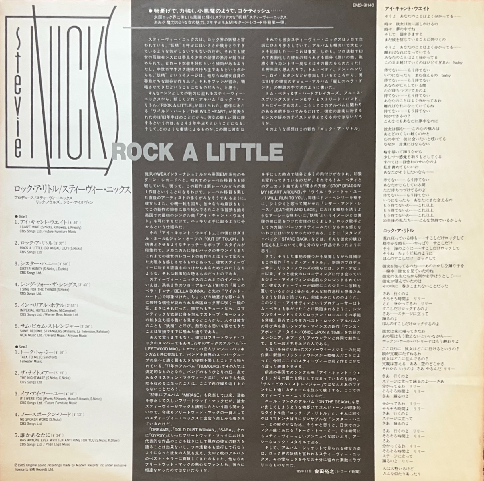 「Talk to Me」、「 I Can’t Wait」、「Has Anyone Ever Written Anything For You」収録