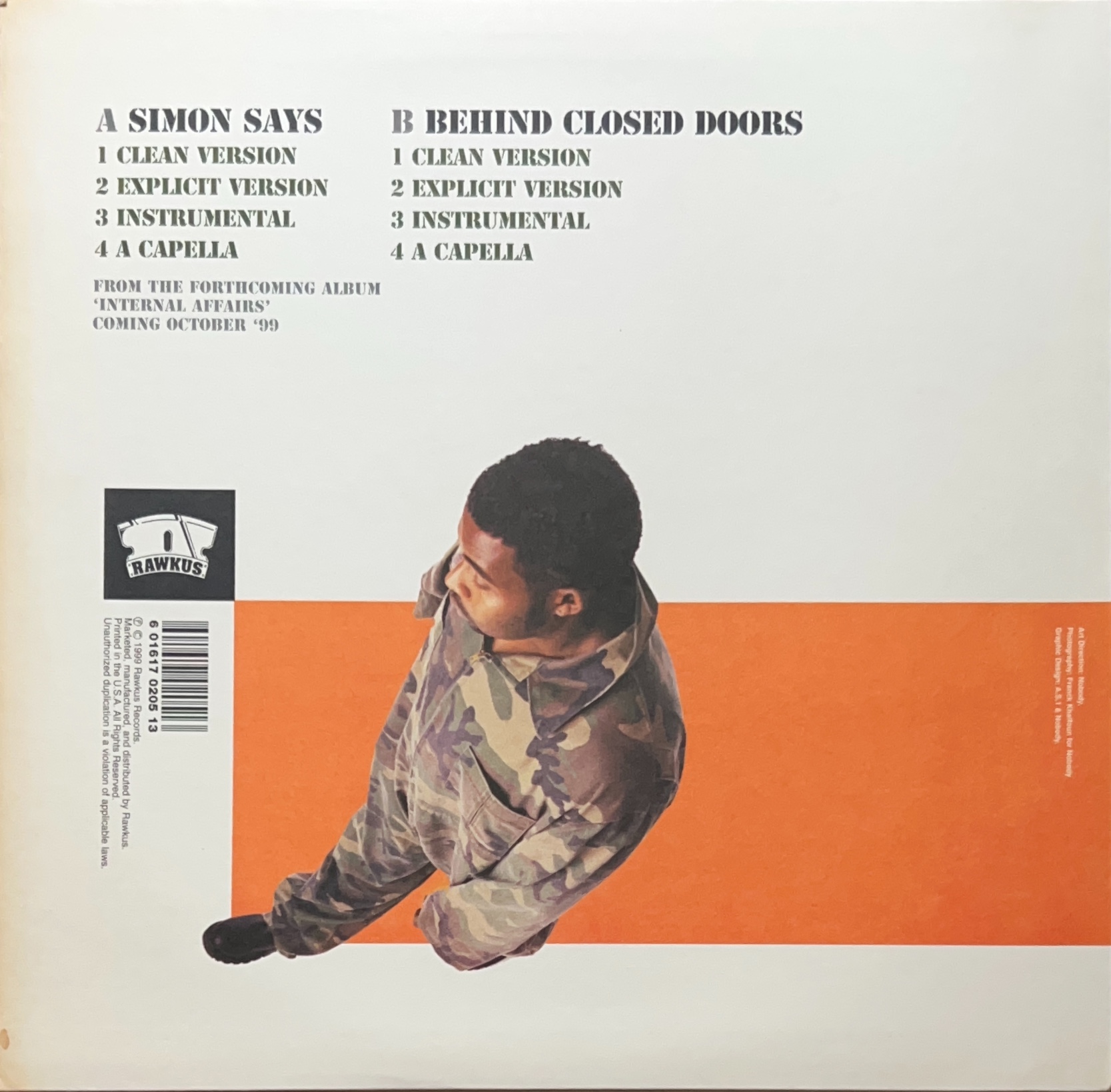 1999年リリース 「ゴジラのテーマ」ネタ使いのPharoahe Monchのアンセム B/W「BEHIND CLOSED DOORS」 RAWKUSレーベル RWK 205-1