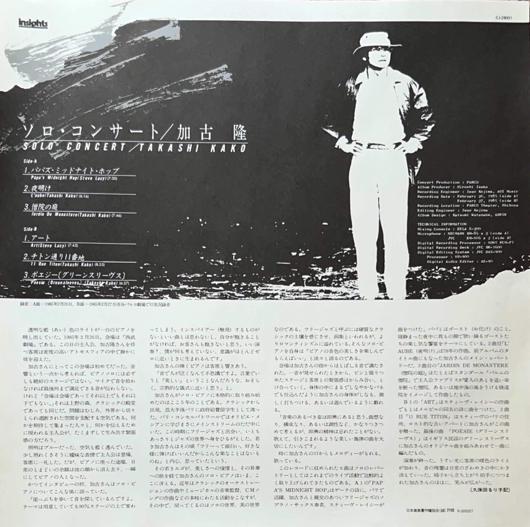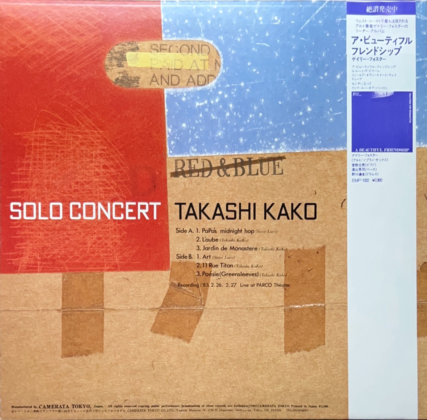 1985年2月にパルコ・シアターで行われたコンサートのライブ・レコーディング音源。