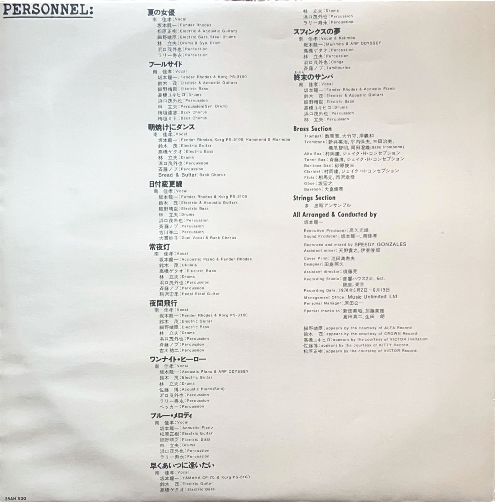 坂本龍一が全曲アレンジ、林立夫、細野晴臣、高橋ユキヒロ等も参加