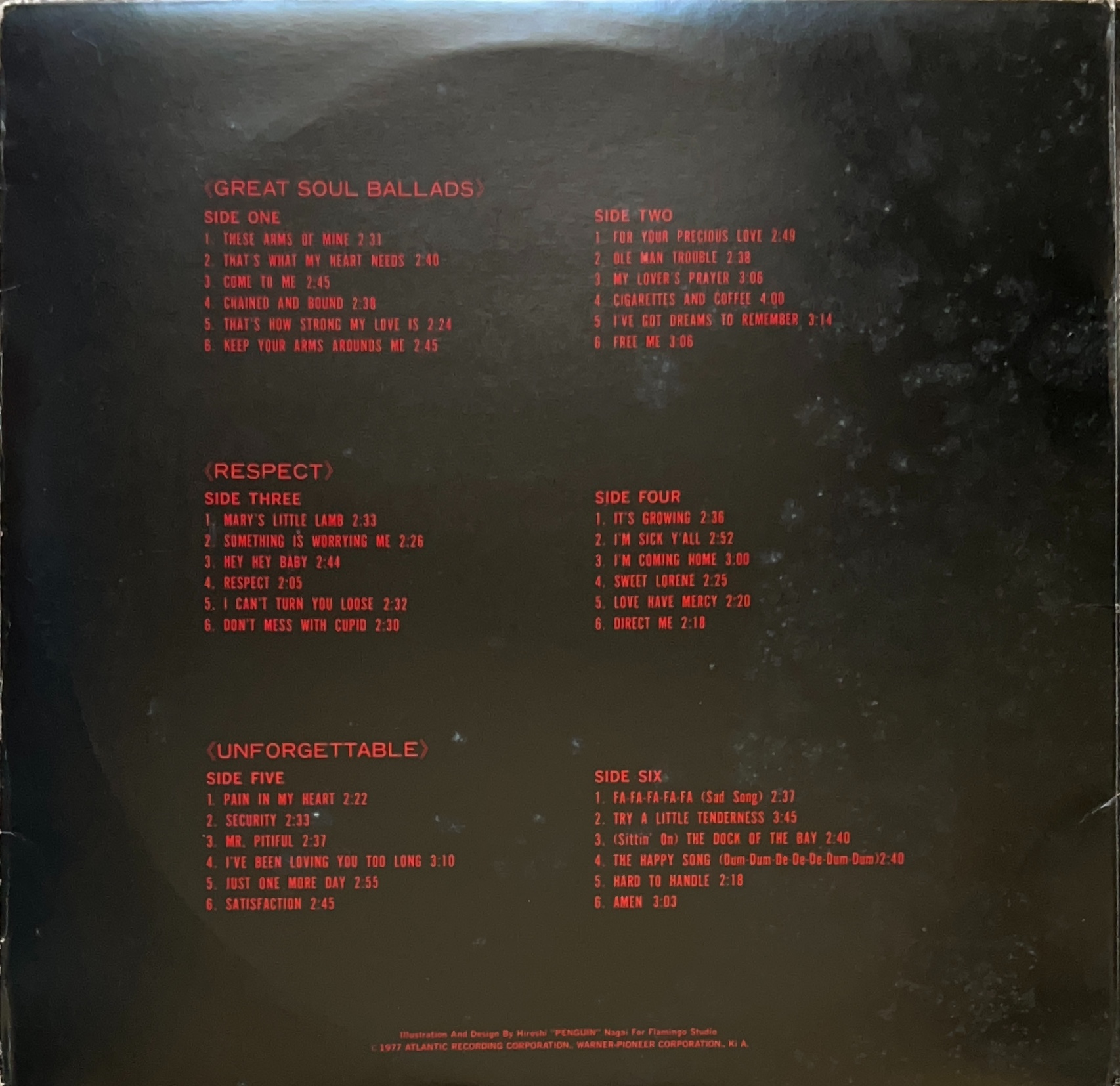 「I’VE BEEN LOVING YOU TOO LONG」「SITTIN’ ON THE DOCK OF THE BAY」「TRAMP」など収録