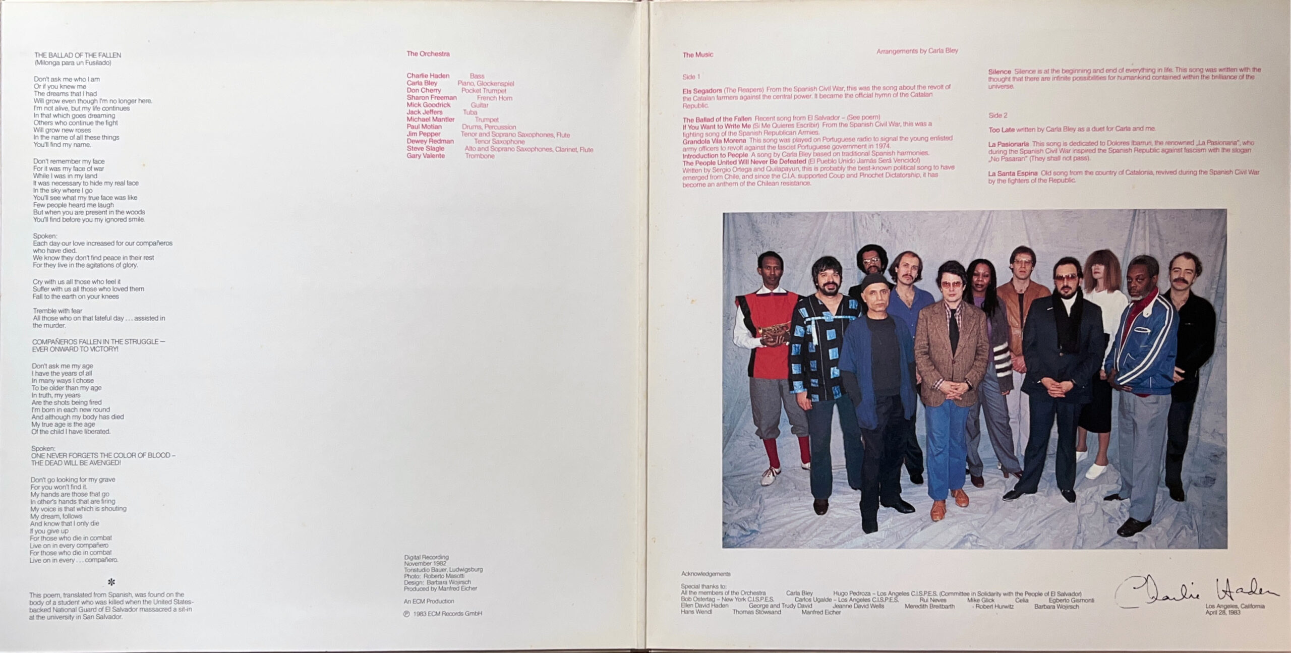 エルサルバドルの民謡やチリの革命歌なども取り入れた、反戦や自由をモチーフに美しい演奏を展開