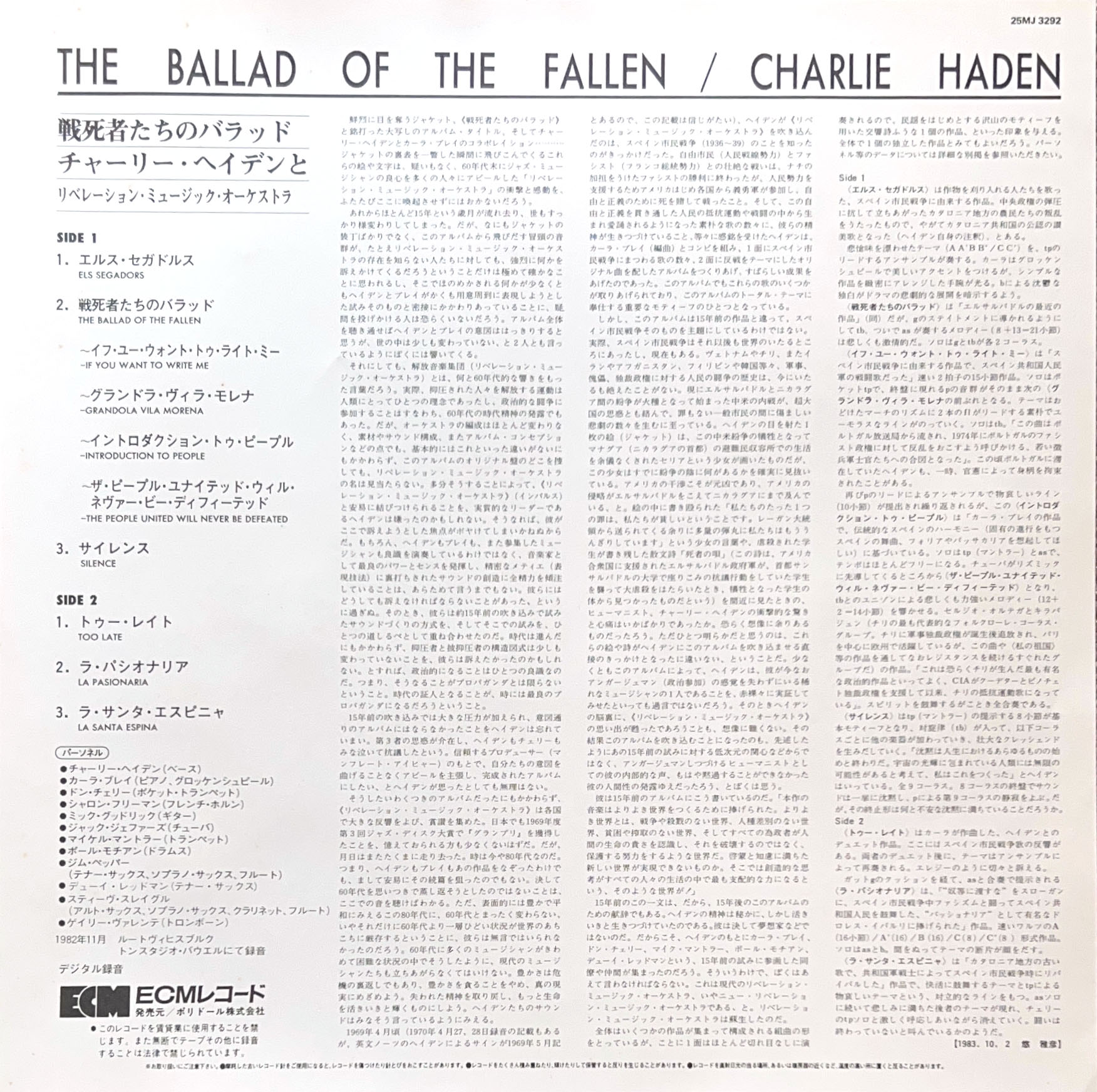チャーリー・ヘイデンとカーラ・ブレイによるリベレーション・ミュージック・オーケストラの2nd