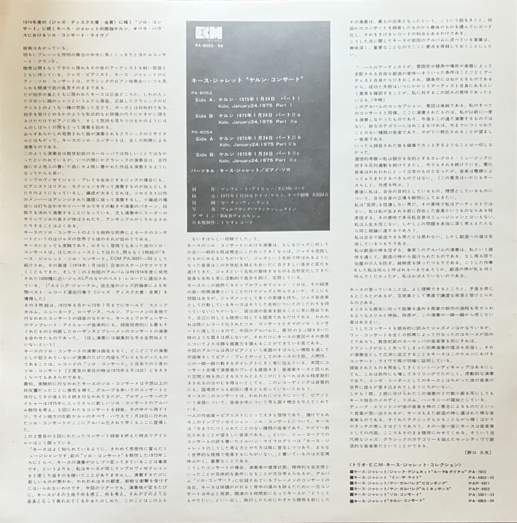 1975年リリース 1975年1月24日にドイツのケルンで行われたソロ・コンサート収録のアルバム キャリア最高の即興演奏と言われる1枚 PA-6053、6054