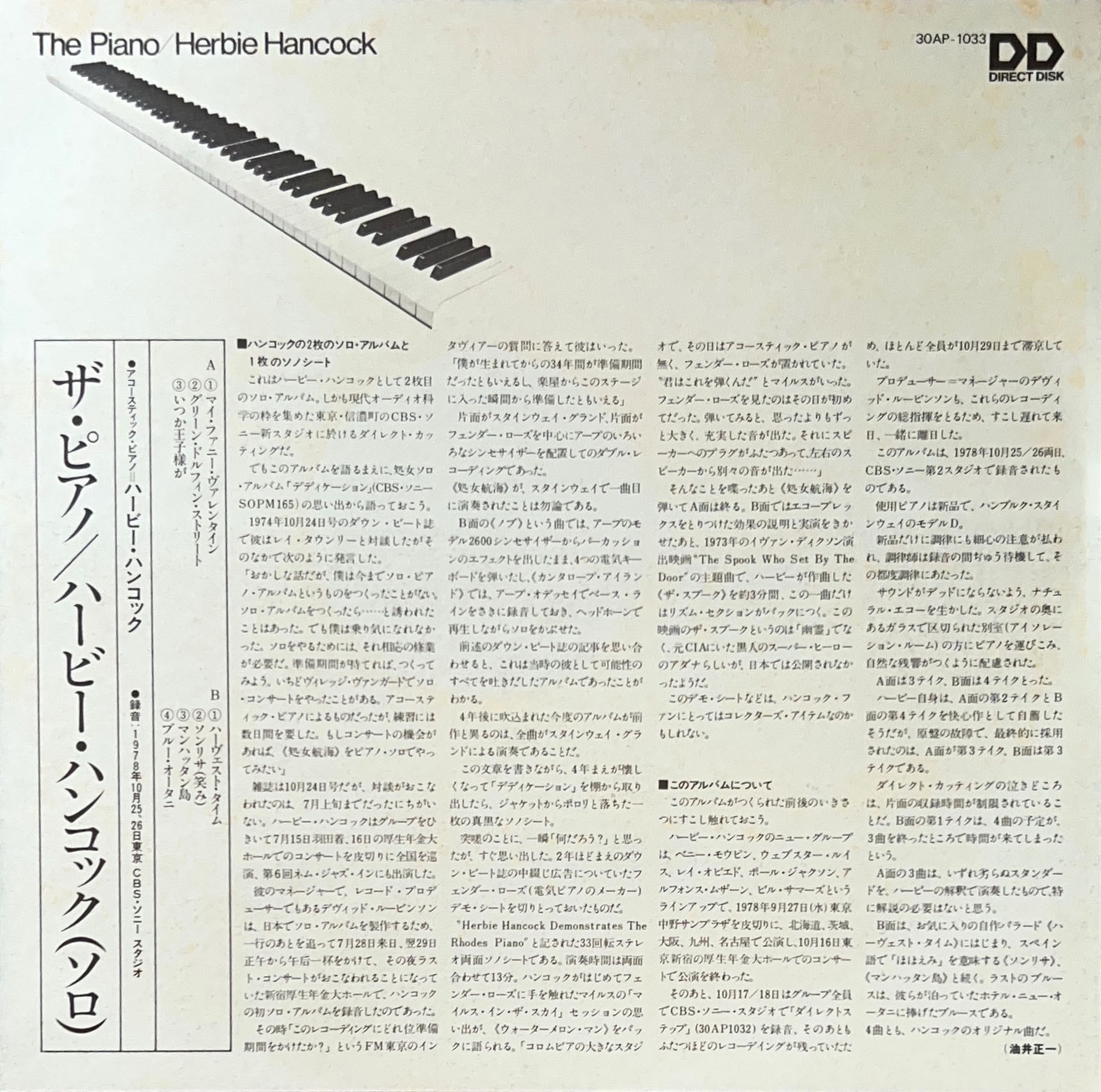 日本企画・オリジナル・マスターサウンド盤。ダイレクトカッティングによる高音質。東京録音盤。