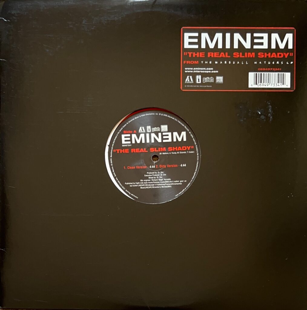 THE REAL SLIM SHADY [12inch vinyl] EMINEM / エミネム 8か月前 DR.DREプロデュースの2000年大ヒット曲 「PLZ STAND UP! PLZ STAND UP!」のリリックが当時ヘビロテ 0694973341 ※ジャケ、若干の端スレ、盤面使用感あるがキズなどなし