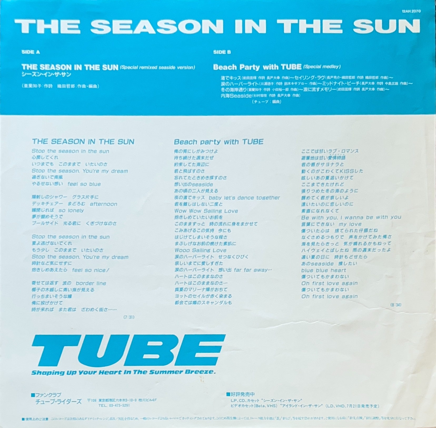 TUBE(チューブ)86年3作目の大ヒットシングル、夏の大定番「シーズン・イン・ザ・サン」を