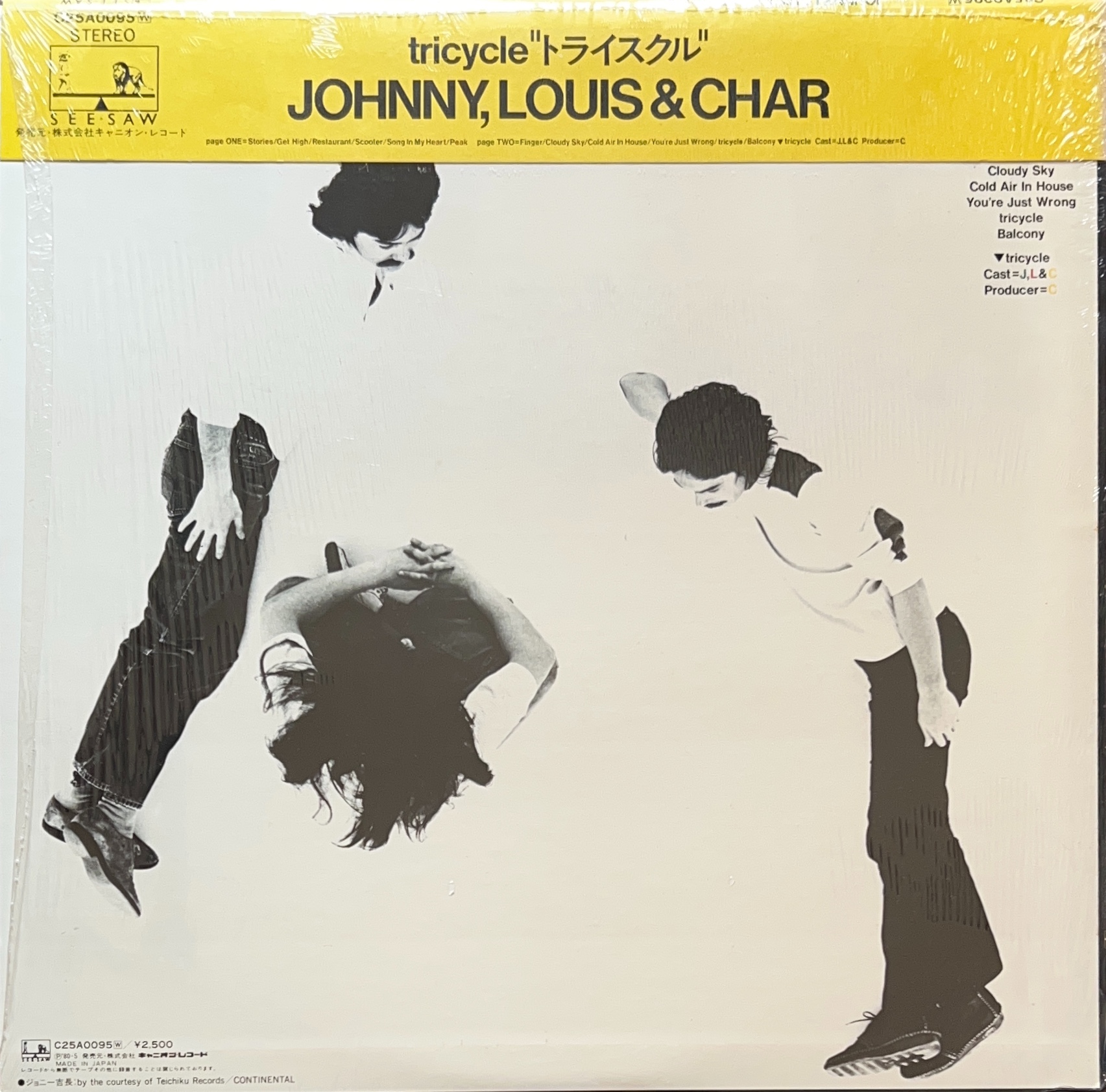 78年にサード “Thrill” を発表した後に、Char(チャー)が元ゴールデン・カップスのルイズ・ルイス加部、元イエローのジョニー吉長と共鳴し結成した最強3ピースバンド、ジョニー、ルイス&チャーのアルバム「tricycle」。ジョニー吉長は今では、金子ノブアキとベーシストのKenKenのであり俳優として活動する金子が未だにドラムの師匠は父と言わしめる名プレイヤー。